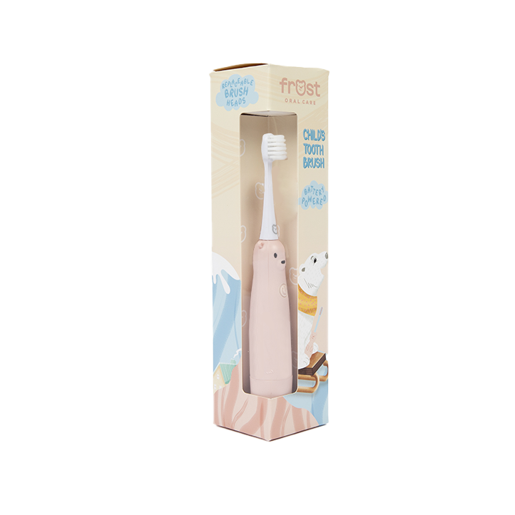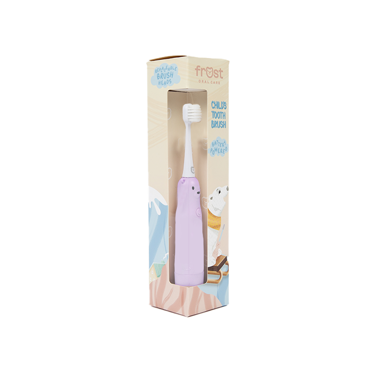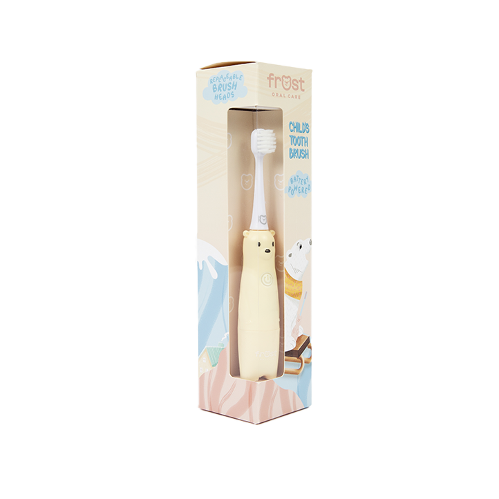 Let's do the toothbrush wiggle, because your kiddo's plaque and cavities are not invited to this party. Our bear-y fun brush offers a powerful cleaning experience and requires just one (included) AAA battery. With a replaceable brush head, easily switch out the bristles so little smiles stay healthy, clean, and strong.