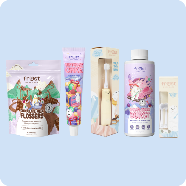 We know how important your kiddo's oral health is. That's why Frost is made with clean ingredients that not only taste great but come with added benefits such as anti-inflammatory, antioxidants, and gum strengthening. Unlike the competition, our products do not use any sugars, parabens, or sodium lauryl sulfate (SLS) so that little teeth can have the best cleaning experience without the harsh chemicals.